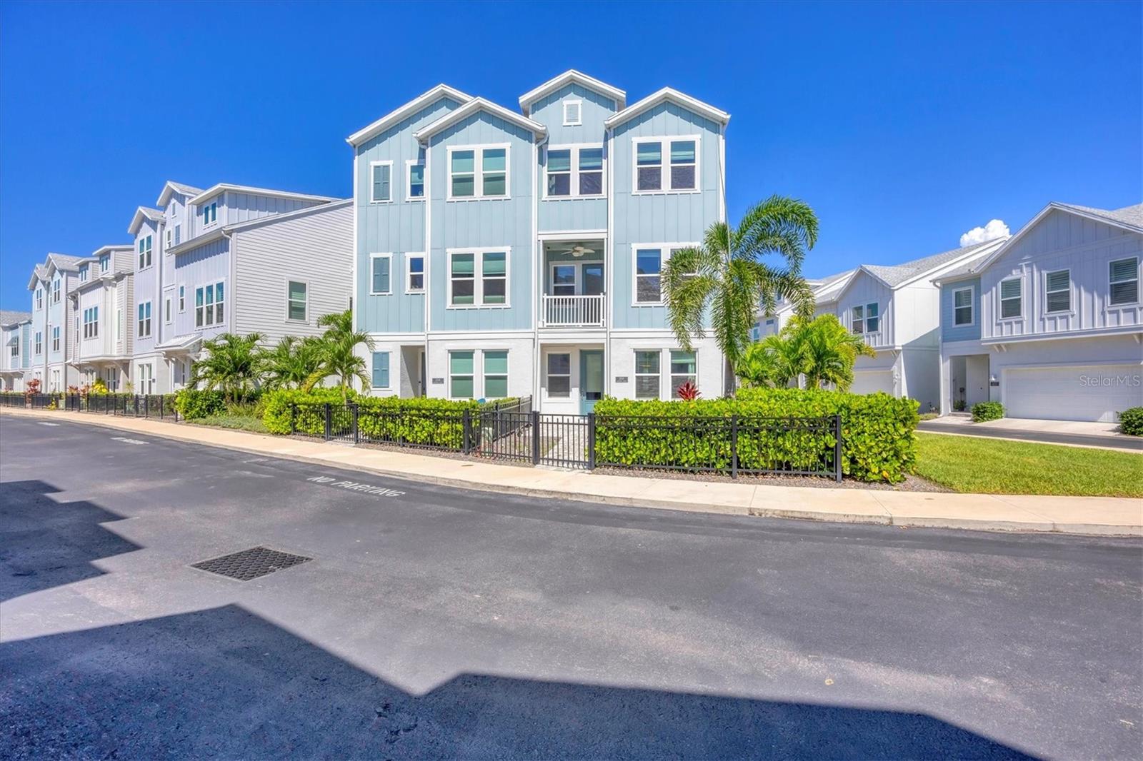 One or more photo(s) has been virtually staged. Experience the ultimate downtown Sarasota lifestyle in this spectacular end-unit townhome. Situated in the sought-after Payne Park Village, this home lives large with 3 stories and 3 bedrooms, each with a private en-suite bathroom. An additional half-bath on the main level adds convenience. The unique end-unit position provides a fenced side yard with plenty of room to expand your private outdoor oasis. Community amenities are second to none, with a heated pool, relaxing spa, a dedicated dog park for your furry friends, and a cornhole gaming area. Access your home from the rear-entry garage, and enjoy the safety and charm of a community with sidewalks throughout. The location is truly unbeatable—directly across the street is Payne Park! Home to a fantastic playground, skate park, and event lawn. Spend your Saturdays strolling to the famous Sarasota Farmers Market, then explore the countless dining, shopping, and entertainment options just outside your door. This is more than a home; it's a downtown destination.